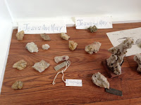 | Part of Kelly's rock collection, many of them labelled with hand-engraved metal tags. |